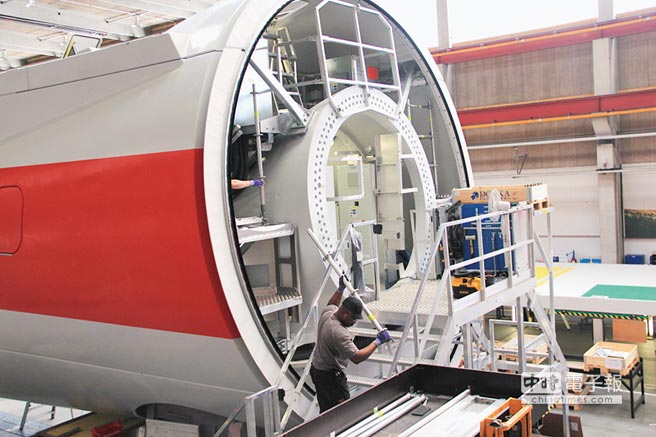 工人正在進行機艙組裝、測試。圖/陳鷖人