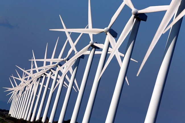 歐洲隆河聖路易港附近可見風力發電機組。路透