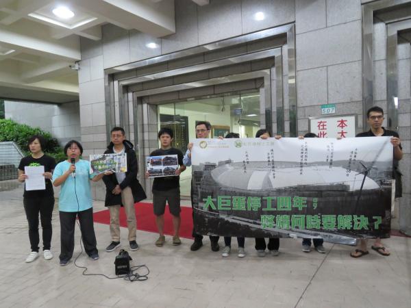 一早聚集在市議會門口抗議的環保團體則共同質疑弊案何時解決。蠻野心足生態協會律師蔡雅瀅指出,2015年5月20日台北市政府都發局以大巨蛋多處主要構造與核定之建照圖不符為由,依建築法第58條規定勒令停工;其後並預告將以「違反建築法第58條、工程品質重大違失」及「未於履約期限內完成興建並取得使照」等違約事由「終止契約」,但後來卻遲遲未終止契約,柯市長並在去年底說出:不拆就是要蓋,不然要幹什麼?日前最高行政法院確定判決認定遠雄違反建築法第58條,柯市長向媒體表示:只要拿到新建照,即可復工。讓長期關心大巨蛋案的民眾、團體非常失望。