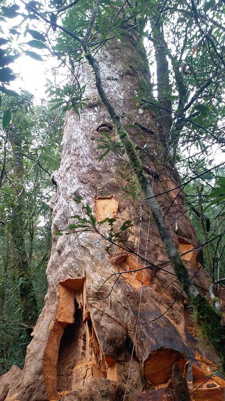 此次在明池山區發現遭盜伐的珍貴林木數量眾多,多是珍貴的扁柏與紅檜,查緝人員獲報後,前往實地瞭解,發現有些樹木相當巨大,5、6個大人都無法環抱,樹齡推估約有千年。這些林木的樹幹上,都慘遭山老鼠恣意砍伐,取下樹瘤或可作為黃金磚的角材,整棵樹從根部活生生被鋸開!