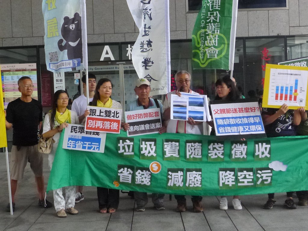 多個環保團體8日到台中市政府陳情,表達垃圾費隨水費徵收問題多,無法反映垃圾產生量,多數民眾也無感不知被收費;而依據雙北及台中石岡區的經驗,隨袋徵收能有效讓垃圾減量。要求政策盡速擴及全市,希望下會期提送議會審議,明年起實施。