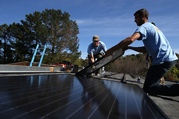 加州成為美國第一個強制新屋加裝太陽能電池板的州,專家預估獨立屋建築成本平均將增加約一萬美元,反對者認為這將進一步推升當地房價,讓居民望屋興嘆。(Justin Sullivan/Getty Images)