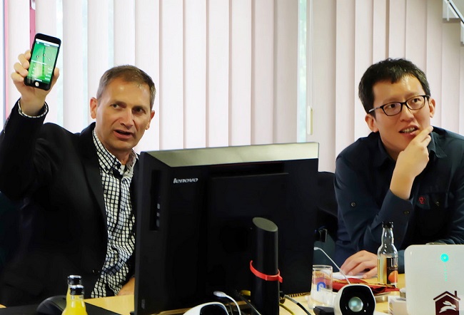 林育立(右)參訪德國哈斯弗特(Haßfurt)市立公用事業公司與市民電廠。攝影:陳文姿。
