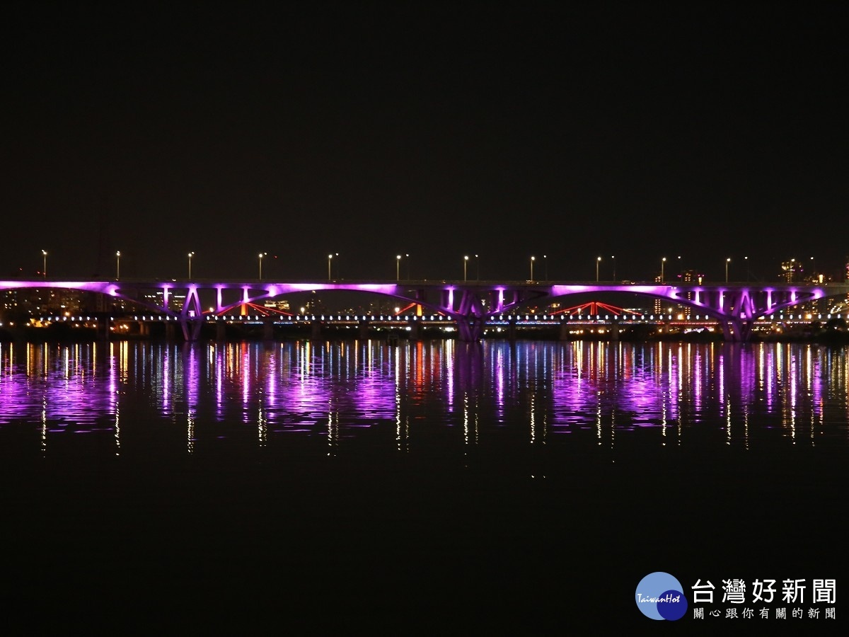 藍色公路夜航遊覽淡水河沿岸風光景緻,從另一個角度觀賞臺北大橋、重陽橋、社子島…等沿岸景色。(圖/交通局提供)