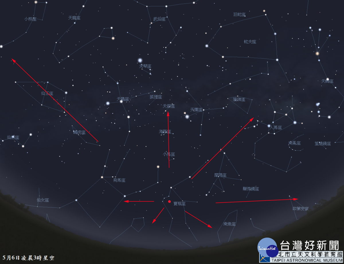 天文館指出,寶瓶座η流星雨來自哈雷彗星殘餘的塵埃,每年4月19日至5月28日出現,極大期前後幾天最適合觀賞,其特色是流星速度快而明亮。