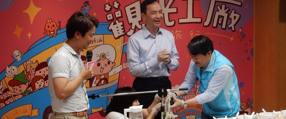 朱立倫市長在觀光工廠輕旅行啟動記者會中特別製作專屬毛小孩的肉粽,讓現場的3隻大狗狗一飽口福。(圖/記者黃村杉攝 … 閱讀全文 新北觀光工廠輕旅行 首創推毛小孩共遊行程_機場接送