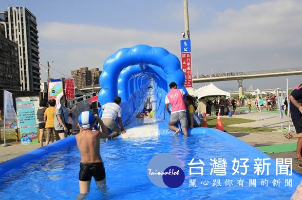 高管處表示,在酷夏將新月橋暨橋下新月廣場化身為適合各年齡層消暑的水陸遊樂園,包括從象頭滑出來的滑水道、在綠蛙肚子中走迷宮認識濕地生態、幸運草展開葉面成了小泳池等,更集結國內最具知名餐車美食與街邊美味,從美式餐飲或傳統甜點讓你一邊品嚐特色美食,一邊眺望新月橋美景,享受河濱透心涼的獨特魅力。