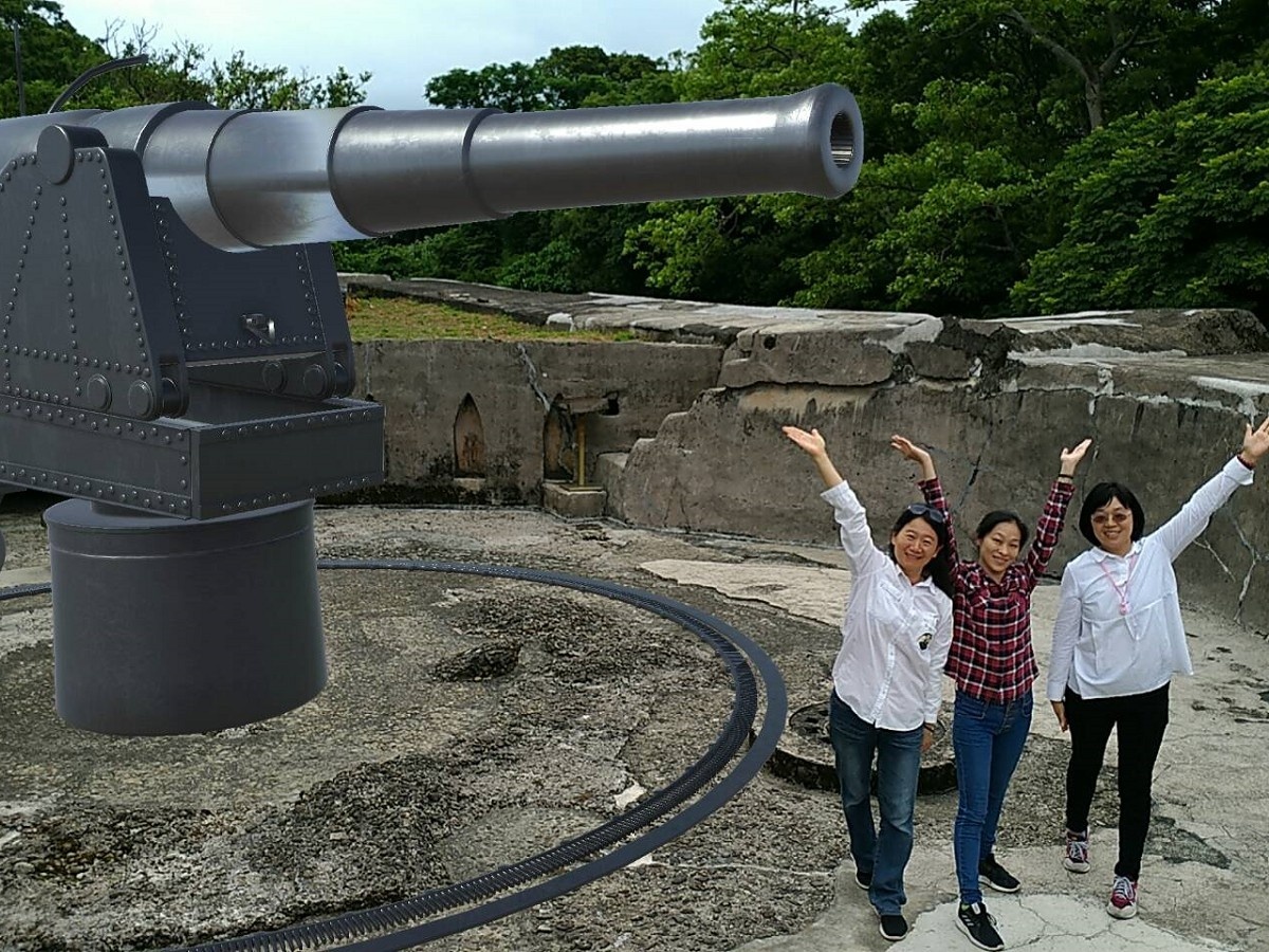 滬尾礮臺AR虛擬火砲好逼真 遊客拍攝創意合照
