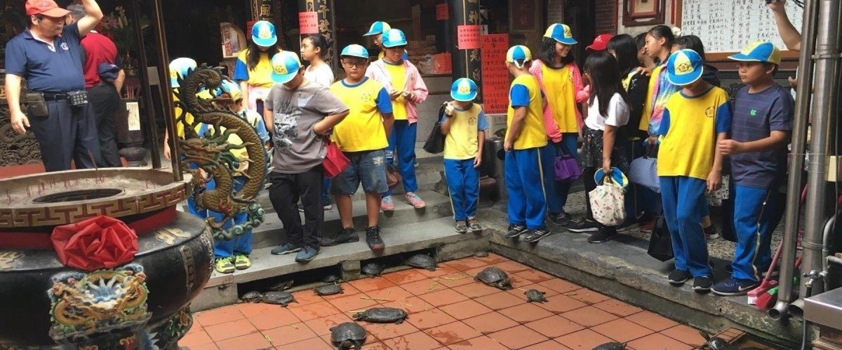 參訪玉井當古廟宇、陽光下看烏龜陽光下曬太陽。(圖/西拉雅提供) 優雅農夫藝術團隊在台南玉井中正路商圈策畫「玉井 … 閱讀全文 走訪不老街 街道藝術小旅行在玉井