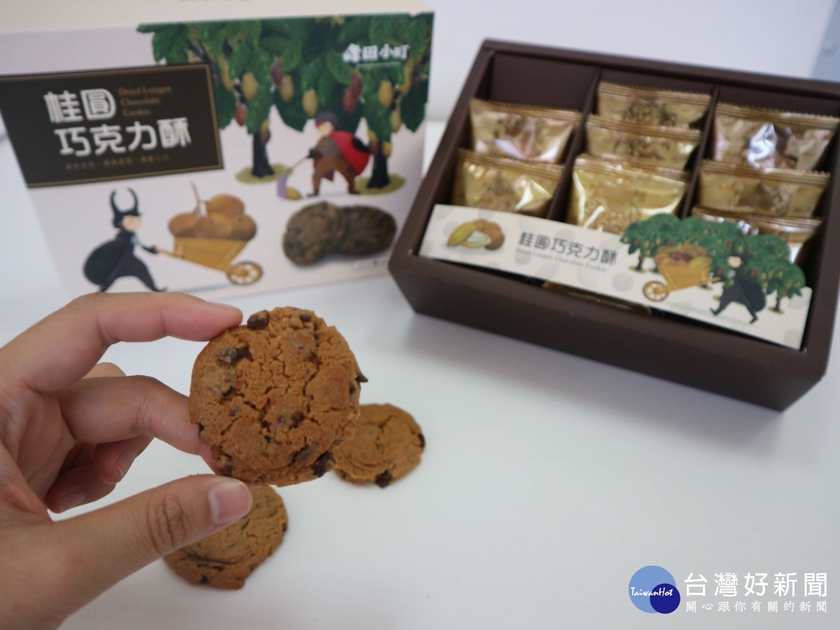 「桂圓巧克力酥」選用的桂圓是來自歷史悠久的「龍眼老欉」,老欉為壯年期果樹的代稱,生產的果實品質最好、產量最佳,經過二次的炭焙技術,保留龍眼的甜美,果肉帶有淡淡龍眼木香氣,融入巧克力手工餅乾中,口感提升,香酥入口。