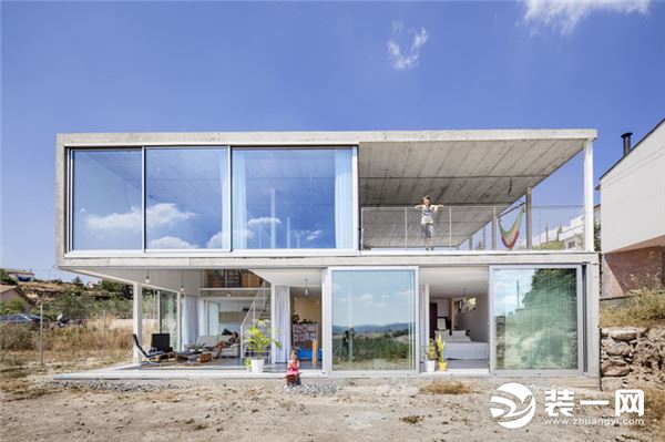 未進入室內前這個二層別墅給人最直觀的感受就是玻璃窗與水泥板的組合。